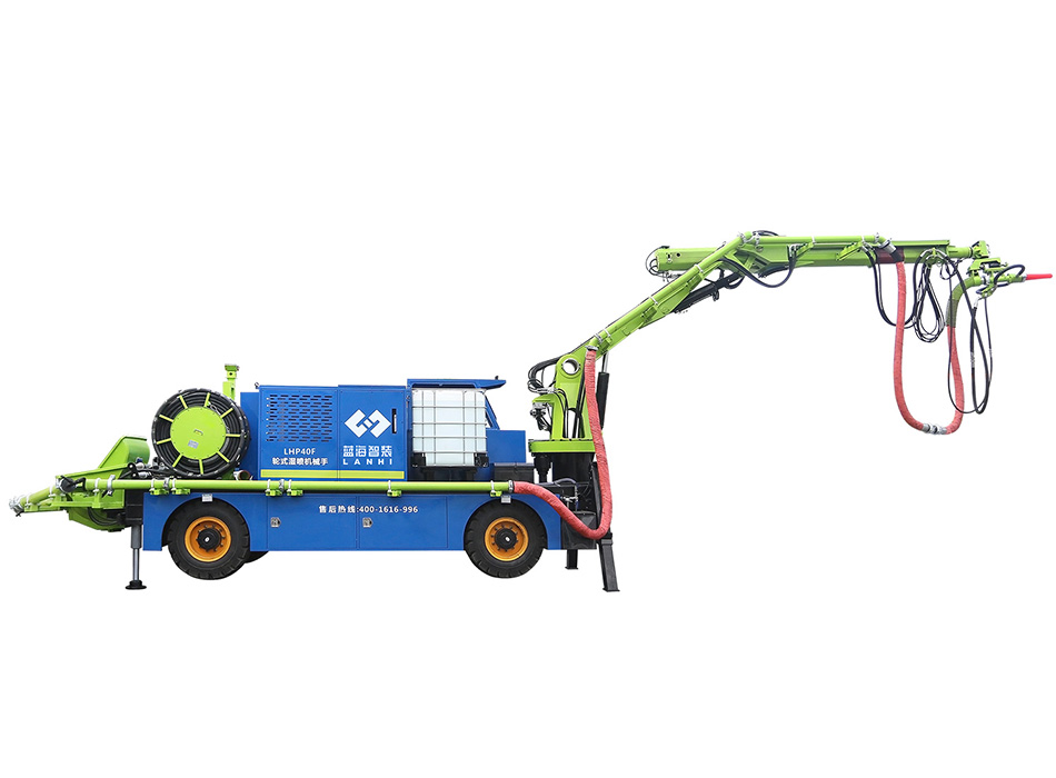 LHP40F輪式濕噴機(jī)械手是綜合國(guó)內(nèi)外濕噴機(jī)技術(shù)研發(fā)的新一代輪式濕噴機(jī)械手,整機(jī)結(jié)構(gòu)優(yōu)化升級(jí),故障率低,配件耗材通用性高,使用成本低。該設(shè)備具有噴射方量大、不易堵管、回彈低、性能穩(wěn)定可靠等特點(diǎn),提高了施工效率,減少混凝土消耗量。